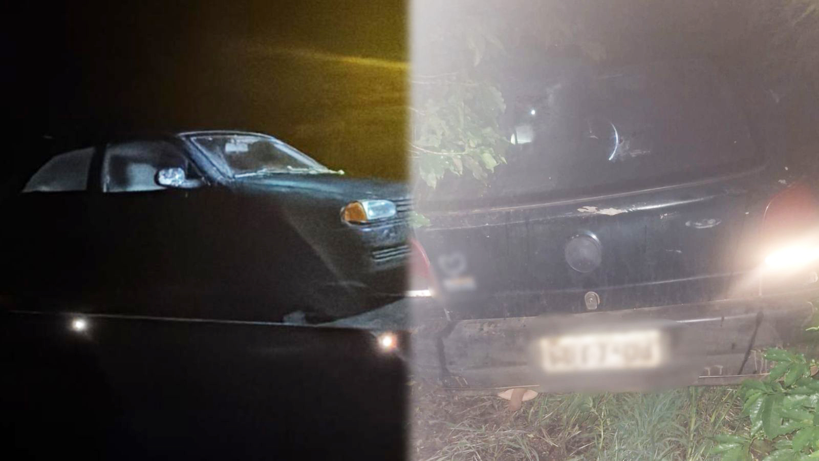 Durante buscas no interior do veículo, os militares encontraram quatro rodas e uma bateria, posteriormente confirmadas como pertencentes ao VW Gol furtado.