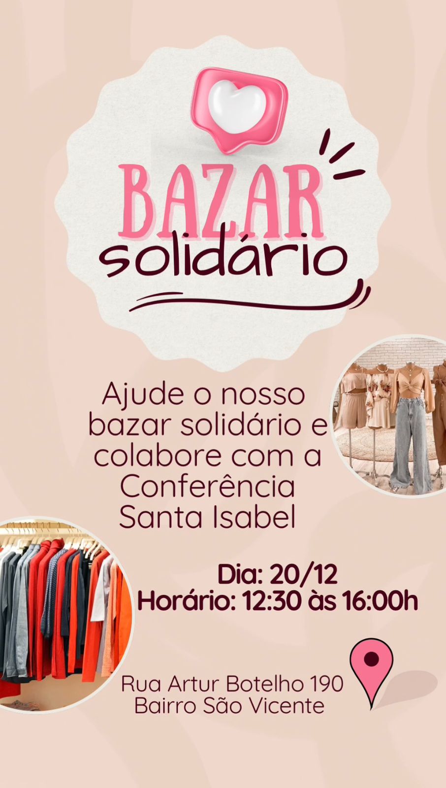 Compareça ao bazar e contribua para o fortalecimento das ações sociais promovidas pela Conferência Santa Isabel.