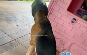 Ocorrência inusitada: Cachorro fica preso com a cabeça em leiteira e mobiliza bombeiros