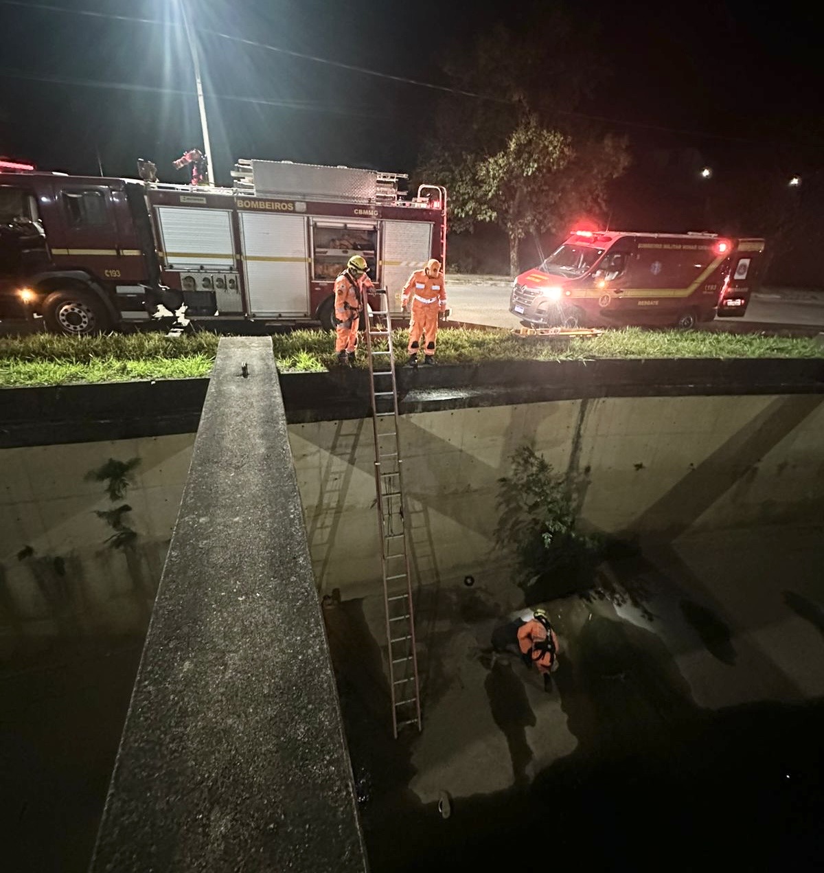 O homem havia escorregado e caído de uma altura aproximada de cinco metros no interior do canal localizado próximo ao Supermercado Hiper ABC.