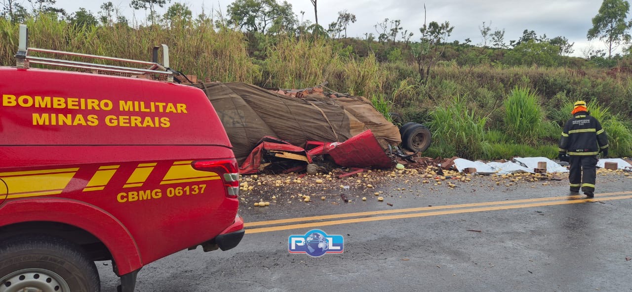 CAMPOS ALTOS (MG)- Na tarde do dia 04/12/2025, por volta das 16h00, por meio de ligação telefônica, o Pelotão Avançado do Corpo de Bombeiros de Campos Altos/MG recebeu a solicitação para o atendimento de ocorrência de colisão frontal entre dois caminhões na BR-354, nas imediações do km 350, trecho pertencente ao município de Campos Altos/MG, próximo ao acesso à comunidade de São José da Bela Vista.