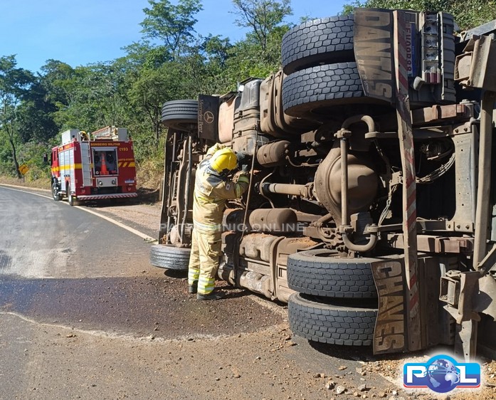 Os militares do Corpo de Bombeiros de Patrocínio foram acionados na manhã desta quinta-feira, 2/4, por volta das 08h10min, pelo COBOM de Uberlândia, para uma ocorrência de tombamento de carreta com risco de explosão na MG-462, km 13, próximo à ponte do Ribeirão Santo Antônio e à Chácara Ilha Verde.