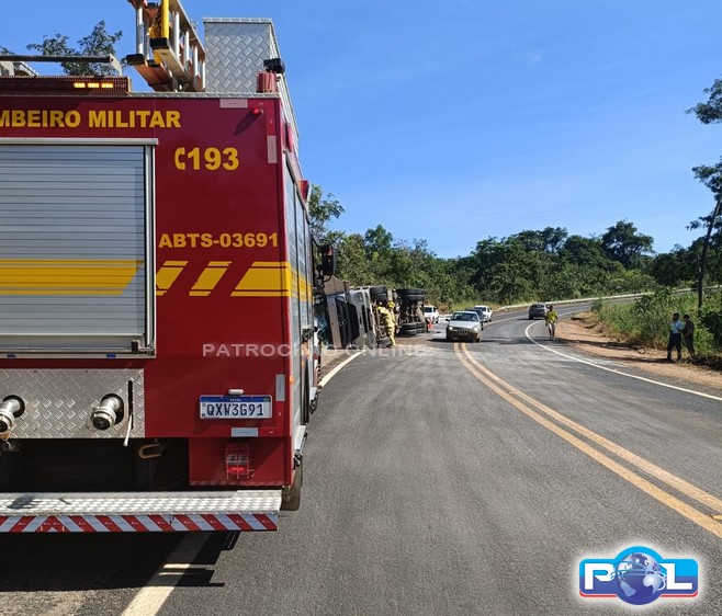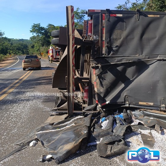 Os bombeiros, no local, constataram que a carreta, com placa do estado da Bahia, estava tombada no acostamento, interrompendo somente parte da pista. A carreta transportava polietileno granulado ensacado.