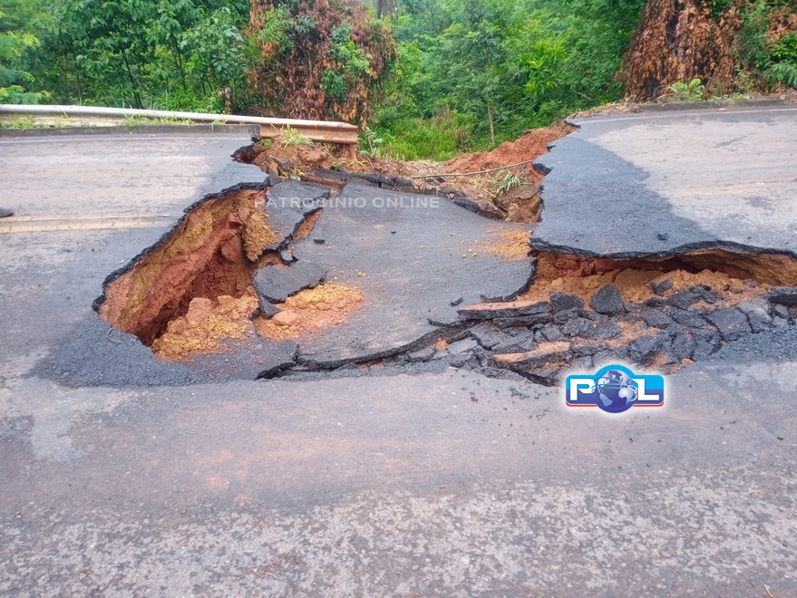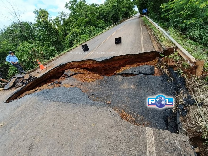 Segundo o DER-MG, a interrupção do tráfego foi provocada pelo rompimento de um bueiro na vazante do Ribeirão dos Mangues, em função do alto volume de chuvas registrado nos últimos dias. Com o colapso da estrutura, o asfalto cedeu e se rompeu completamente, tornando necessária a interdição imediata da via.