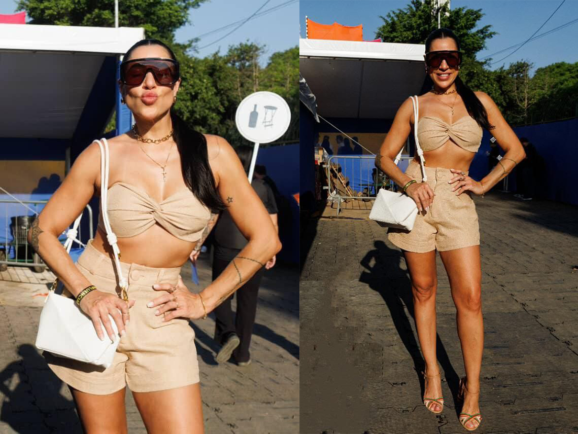 Ela curtiu o Tardezinha, em São Paulo, no mesmo evento que teve Pixote, Thiaguinho, Rodriguinho e Netinho de Paula, com participação de Turma do Pagode e Chrigor — claro, usando um dos nossos óculos.