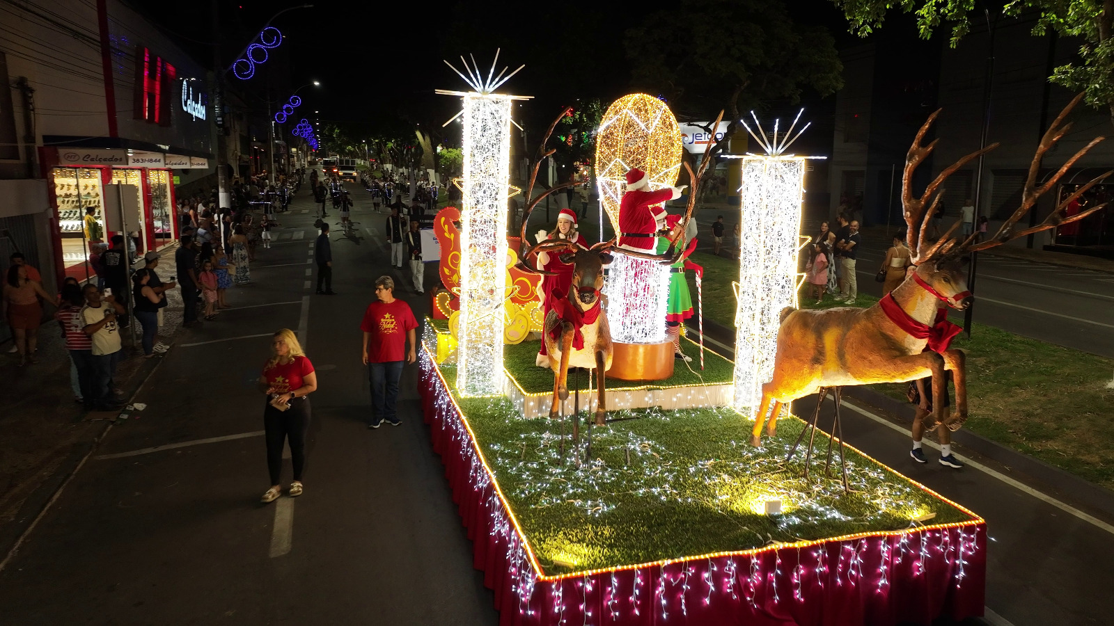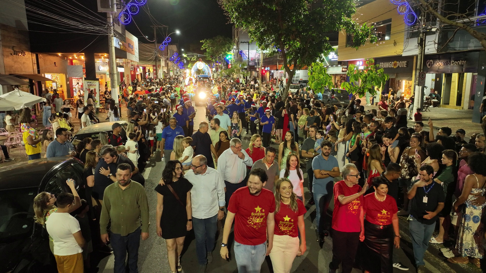 A programação começou com um grande cortejo pelas ruas centrais, reunindo autoridades, grupos culturais, fanfarras do Colégio ABC e Dom Lustosa, a Banda Abel Ferreira e três carros alegóricos, incluindo o mais aguardado, que trouxe o Papai Noel.