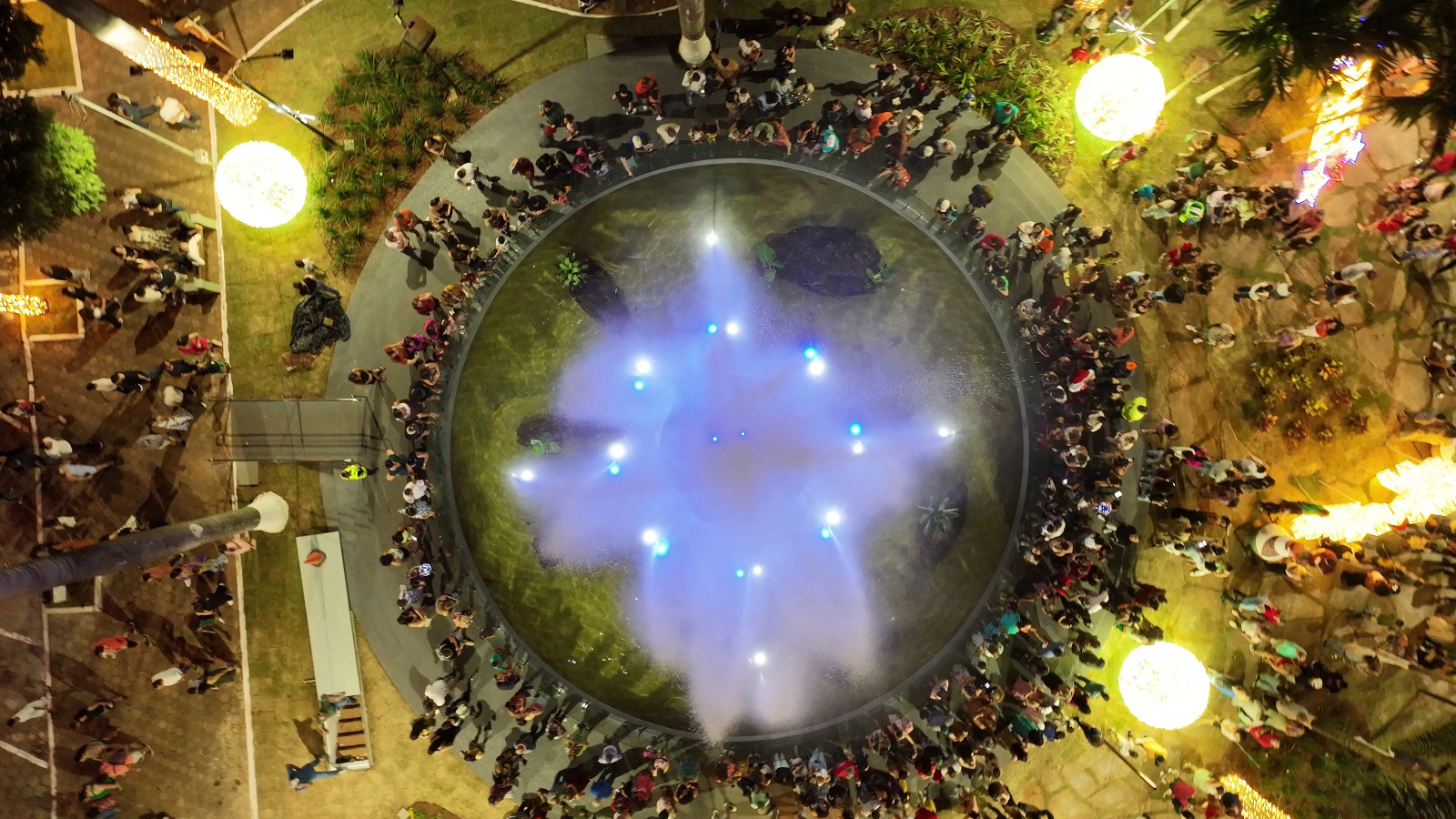 Na Praça Santa Luzia, a abertura oficial reuniu centenas de famílias que acompanharam a contagem regressiva conduzida pelo Prefeito Gustavo Brasileiro e pela Primeira-Dama, Dra. Gabriela Guimarães Brasileiro, acendendo a iluminação natalina que transforma a cidade nessa época especial. Em seguida, o Papai Noel recebeu a chave da cidade, símbolo do início das celebrações.