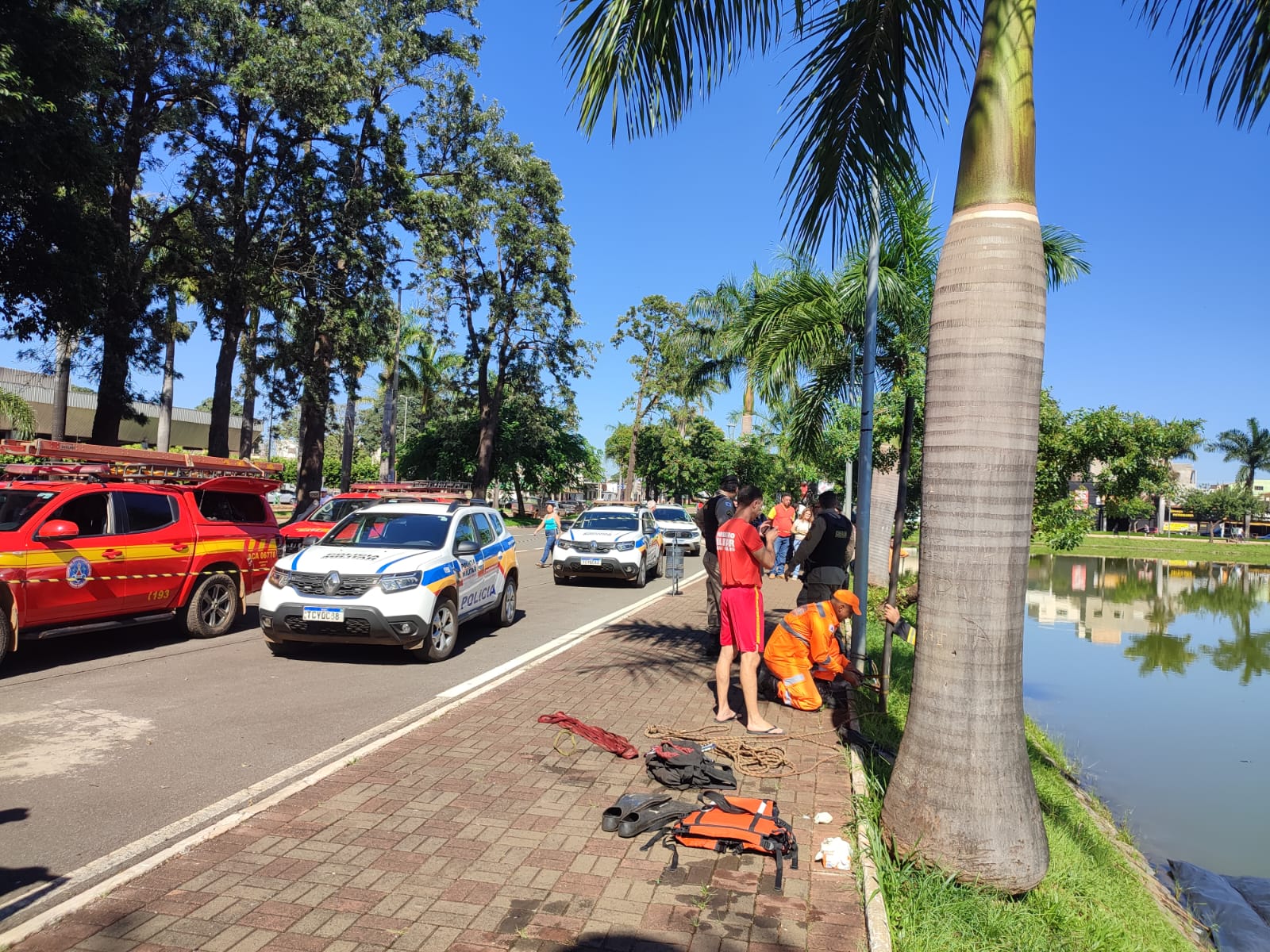 Ao chegarem ao local, as equipes de salvamento constataram que o corpo estava a aproximadamente 20 metros da margem da lagoa. Um bombeiro militar adentrou nas águas e realizou o transporte da vítima até a terra firme.