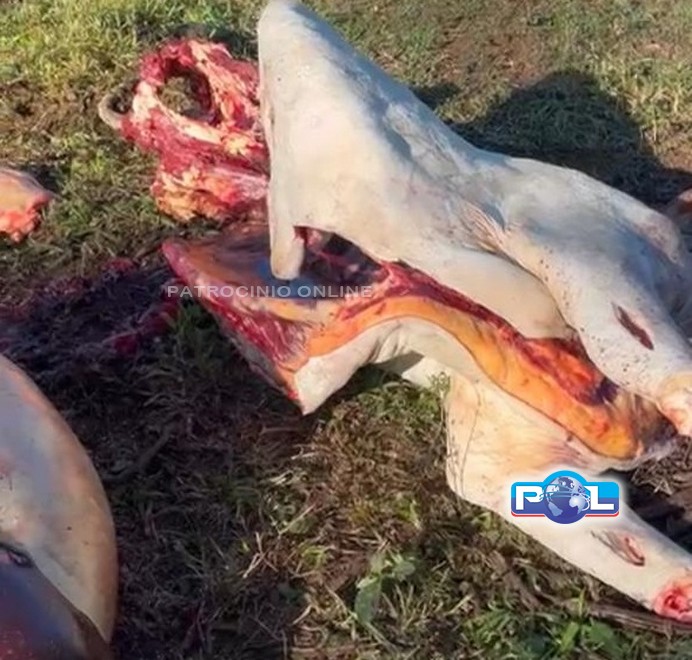 Segundo informações, criminosos invadiram uma fazenda, abateram uma vaca e furtaram a carne, deixando os restos do animal no local.
