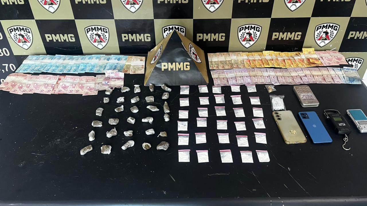 Durante o rastreamento, um dos suspeitos, de 42 anos, foi localizado e abordado na Avenida Vinícius de Morais, dentro de um veículo Fiat Palio Weekend de cor branca. Com ele foram apreendidas 25 (vinte e cinco) buchas esverdeadas semelhantes à maconha; 02 (duas) pedras de tamanho médio semelhantes ao crack; 02 (dois) aparelhos celulares; 01 (uma) máquina de cartão; 01 (um) envelope contendo diversos comprovantes de pagamento; a quantia de R$ 2.264,00 (dois mil duzentos e sessenta e quatro reais); 04 (quatro) envelopes plásticos contendo pó branco semelhante à cocaína; e outros materiais relacionados ao tráfico de drogas.