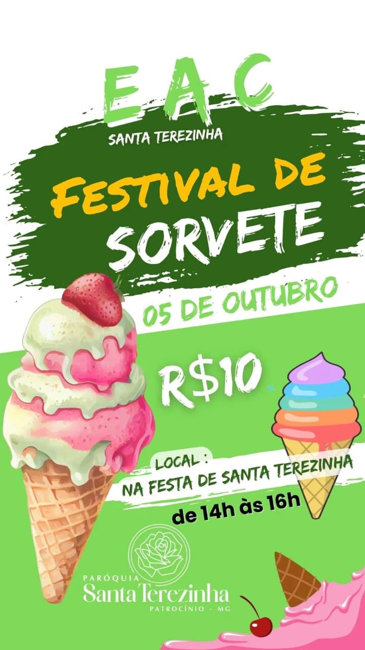 Acontece no próximo domingo, 05/10, o Festival de Sorvete e do EAC da Paróquia Santa Terezinha. O evento é em prol de arrecadar renda para os adolescentes terem experiência na JDJ (Jornada Diocesana da Juventude), que acontecerá no mês de novembro, em Patos de Minas.