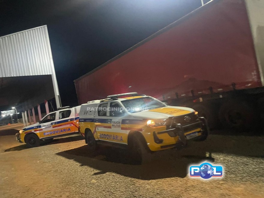 Os militares, na noite de quarta-feira, 12/11, por volta das 20h25min, no local da denúncia, na BR-146, fizeram a abordagem de um caminhão idêntico ao do solicitante, ostentando a placa do mesmo veículo.