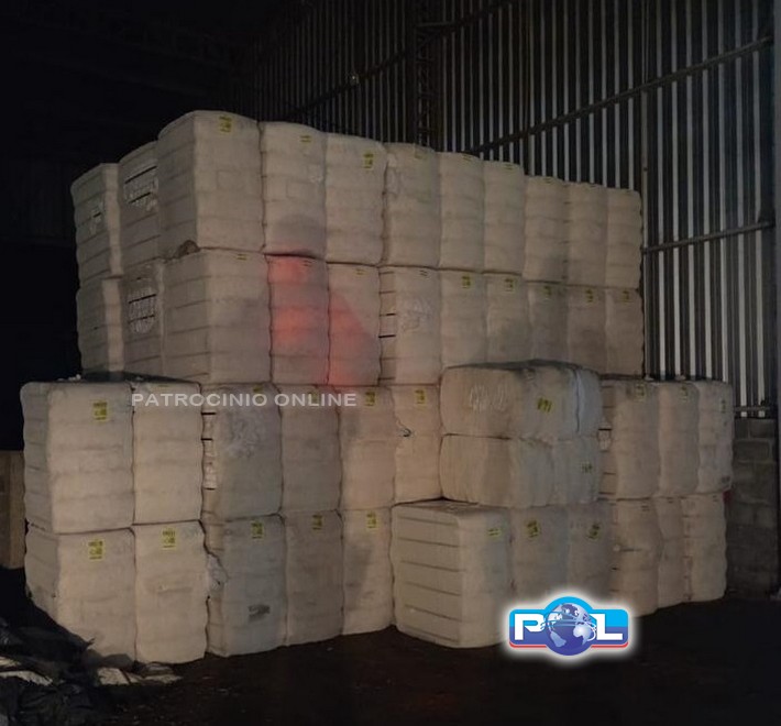 A carga, avaliada em R$ 370 mil reais, foi descarregada no pátio da algodoeira, e o caminhão e o semirreboque foram apreendidos por adulteração/clonagem.