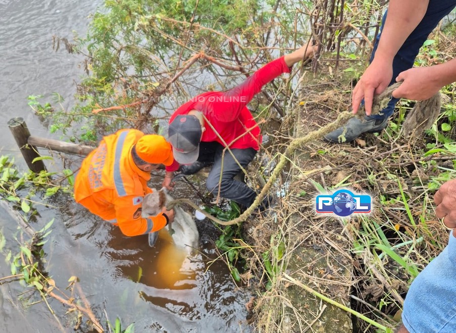 O bezerro foi resgatado sem ferimentos aparentes e, após o atendimento, foi entregue ao seu proprietário.