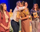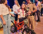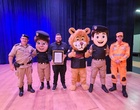 Um dos pontos altos do evento foi o ato de materialização do recebimento da doação de novos mascotes do Proerd: o PM Amigo Legal, a PM Amiga Legal e o leão Daren.