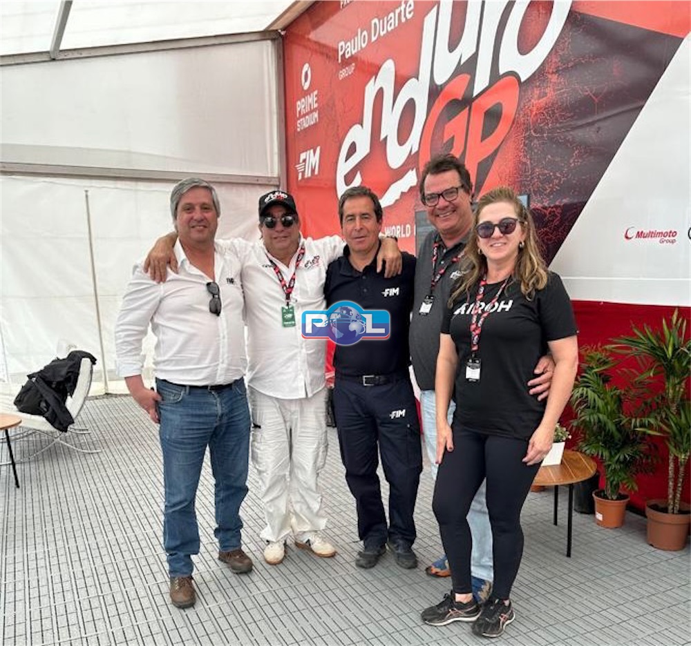 Na foto, vemos Maurício Brandão ao lado do promotor do Enduro GP, Francisco Pita, que está usando um boné. Também estão presentes Pedro Mariano, o diretor de Enduro, vestido com uma camisa preta, e o presidente da Confederação Portuguesa de Motociclismo, que aparece de camisa branca. Essa reunião reflete a colaboração entre esses importantes representantes do motociclismo para impulsionar o Enduro em nível internacional.