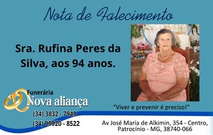 Nota de falecimento: Sra. Rufina Peres da Silva, aos 94 anos.