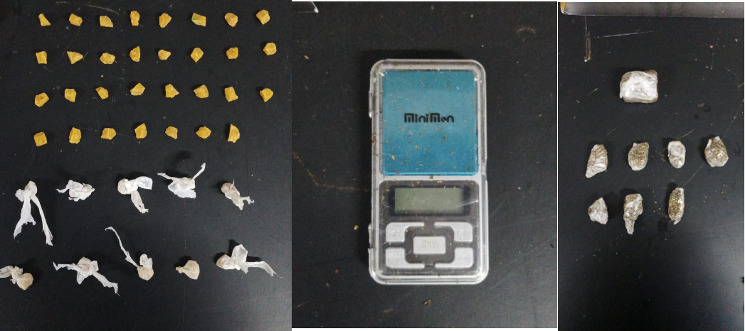 Após a abordagem, foram localizados com o suspeito dinheiro em espécie e um aparelho celular. Na sacola dispensada pelo indivíduo, foram encontradas porções de substâncias análogas à cocaína, maconha e haxixe.