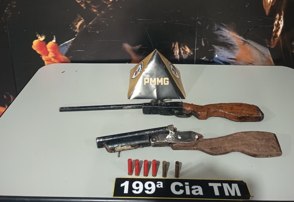 Durante as diligências, foram localizadas duas armas de fogo de fabricação artesanal, além de munições de calibre permitido.