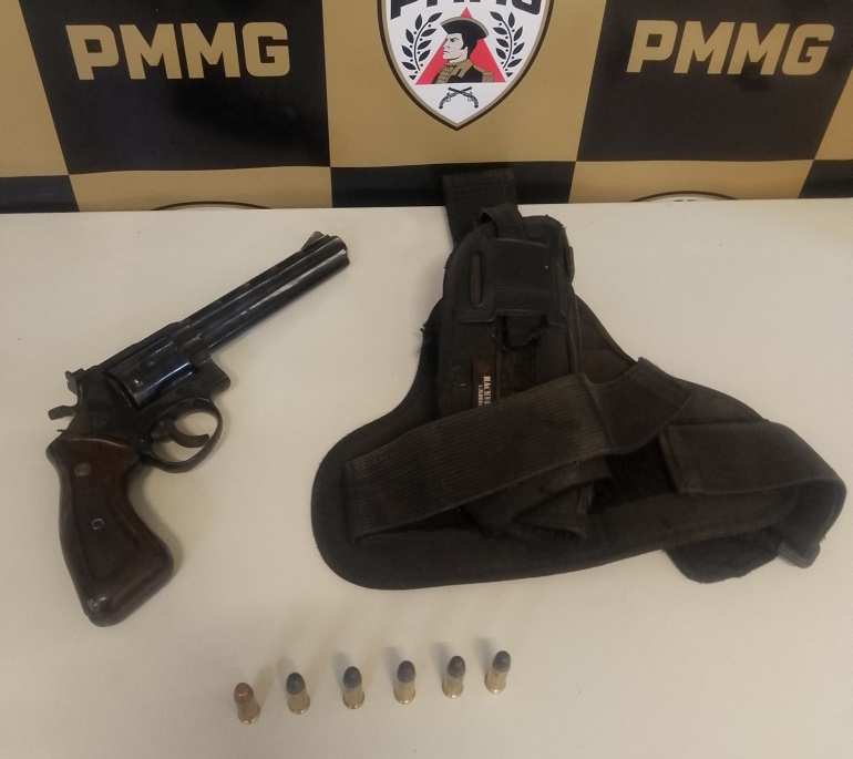 Diante da fundada suspeita, foi realizada busca no local, onde os militares localizaram um revólver calibre .38, municiado com seis munições intactas, além de um coldre. A arma está sem registro legal.