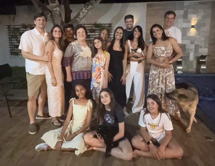 Nas fotos abaixo com o filho (as) nora e genros e também os netos.