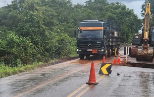 Rodovia MG-400 tem tráfego liberado em meia pista após rompimento de bueiro