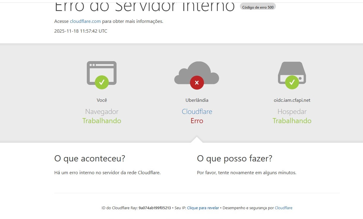 O Patrocínio On-line estava forsa do ar na manhã desta terça-feira, que foi marcada por um apagão digital de alcance global, evidenciando a concentração de infraestrutura da internet e a grande dependência de serviços intermediários como a Cloudflare. Uma falha interna na rede da empresa, que atua como proxy reverso e provedora de segurança para milhões de sites, causou a indisponibilidade ou lentidão de plataformas essenciais em todo o mundo.