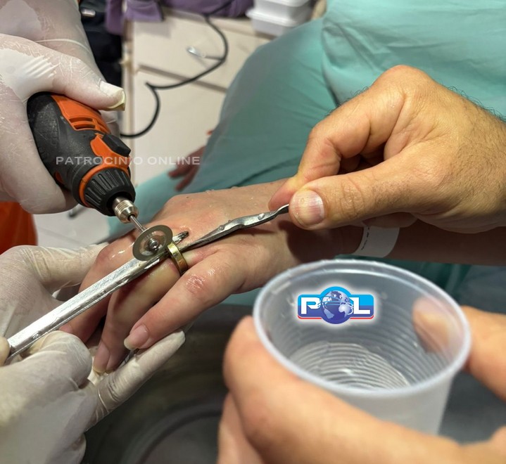 O dedo da vítima encontrava-se bastante inchado em decorrência das tentativas anteriores de retirada. Após a remoção da aliança, a paciente permaneceu sob os cuidados da equipe médica da unidade hospitalar.