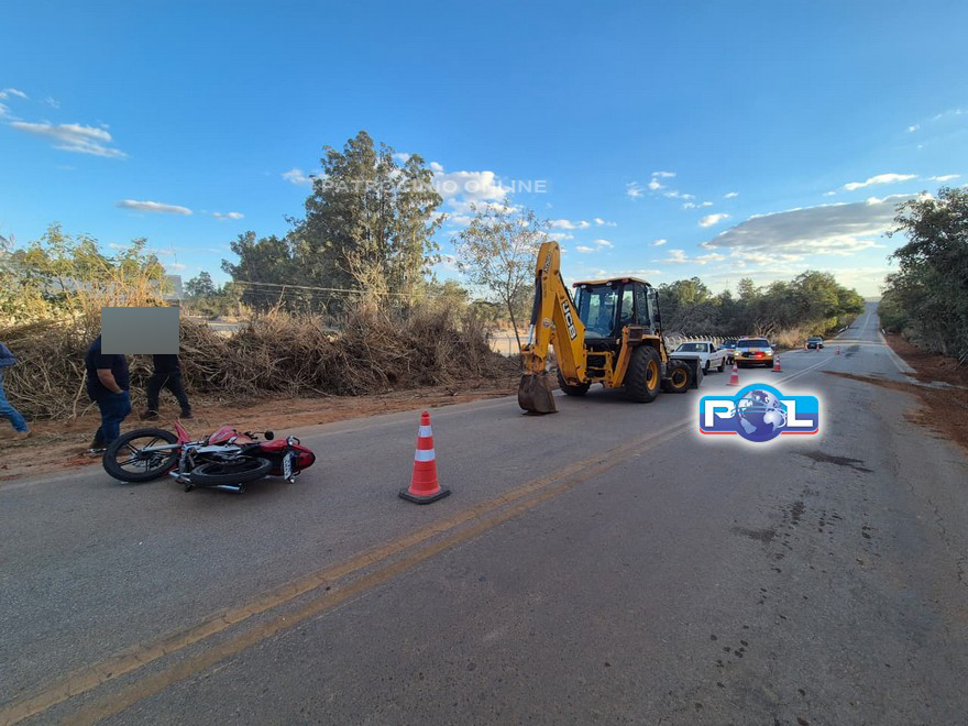 A Polícia Militar Rodoviária foi acionada na tarde de quinta-feira, 23/10, por volta das 15h20min, para um acidente com vítima na MG-188, KM 331, município de Coromandel. No local, eram realizadas obras de recuperação/recapeamento da rodovia e ocorreu um acidente envolvendo uma motocicleta e uma retroescavadeira de rodas.