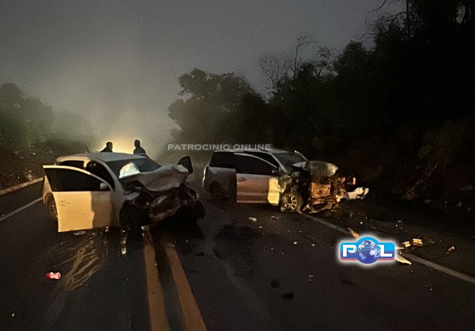 O acidente aconteceu no km 318 da BR-365 e envolveu uma colisão frontal entre dois veículos, um Gol e um SpaceFox.