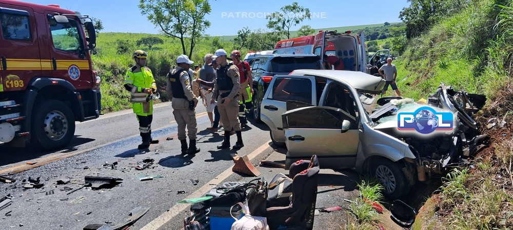 Segundo informações, a colisão foi frontal oblíqua entre uma carreta que transportava iogurte de Paracatu para Patrocínio e um automóvel Fiesta, que transportava cinco ocupantes.