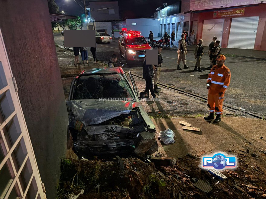 Durante a fuga, perdeu o controle da direção e colidiu contra um estabelecimento comercial na esquina das ruas Simão Pedro e Dom Bosco.
