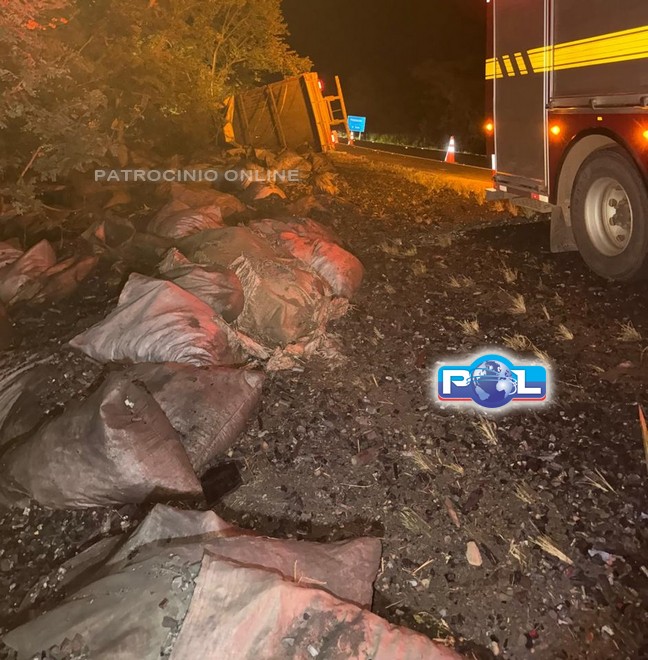 Os militares do Corpo de Bombeiros, SAMU, Polícia Militar, ECOVIAS, concessionária que administra a rodovia, e a perícia da Polícia Civil foram, na noite de domingo, 15/03, por volta das 22h00min, para um grave acidente envolvendo um caminhão carregado com carvão, na BR-135, km 521, na região do município de Buenópolis.