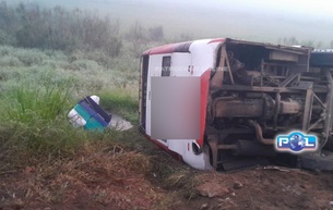 Ônibus de romeiros que voltava de Aparecida do Norte sai da pista, cai em barranco e capota na BR-267