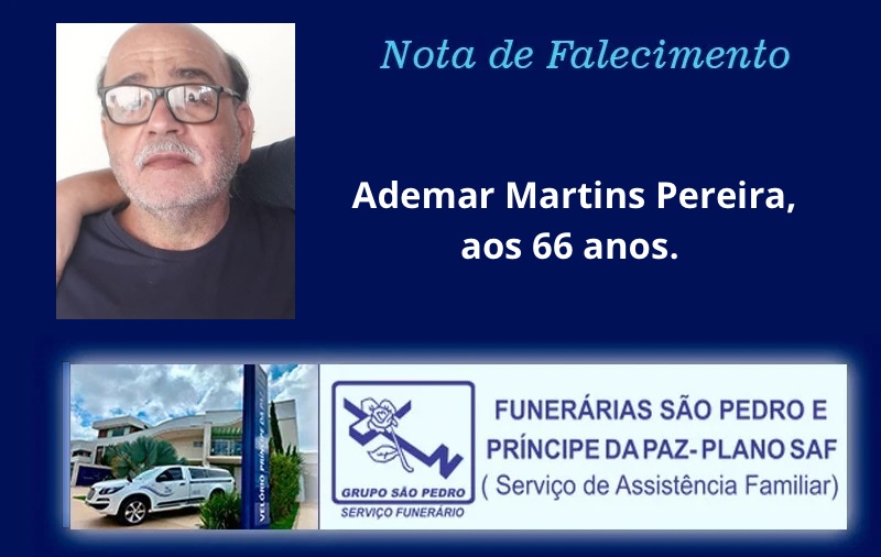Faleceu na terça-feira, dia 17/03/2026, em Patrocínio (MG), Ademar Martins Pereira, aos 66 anos.