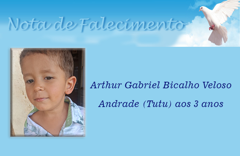 Faleceu neste domingo, 01/02/2026, em Carmo do Paranaíba/MG, Arthur Gabriel Bicalho Veloso Andrade (Tutu) aos 3 anos
