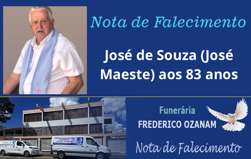 Funerária Frederico Ozanam, juntamente com os familiares comunica o falecimento do sr. José de Souza (José Maeste) aos 83 anos, ocorrido hoje, 09 de novembro de 2025, em Patrocínio/MG.