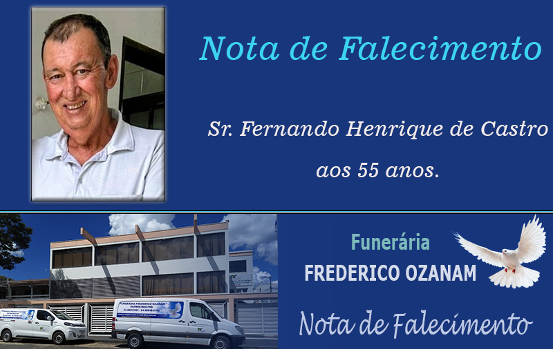Faleceu neste sábado, 21/02/2026, em Patrocínio/MG, o Sr. Fernando Henrique de Castro aos 55 anos.