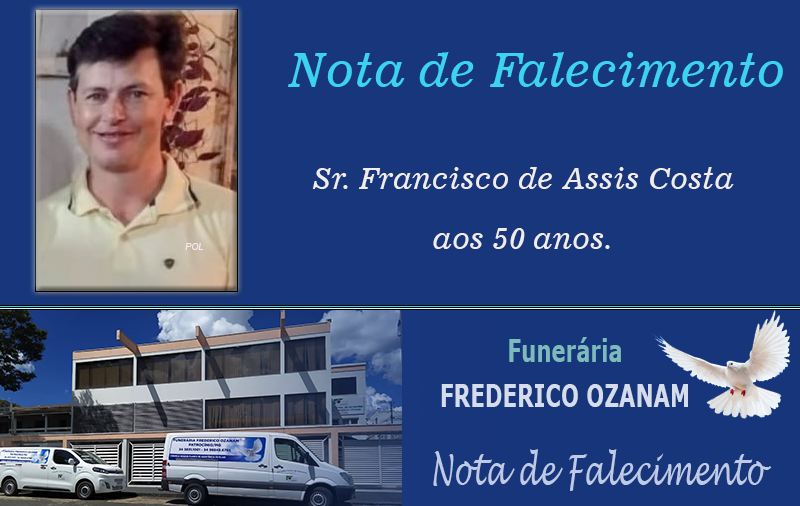 Faleceu nesta segunda-feira, 29 de dezembro de 2025, em Patrocínio/MG, o Sr. Francisco de Assis Costa aos 50 anos.