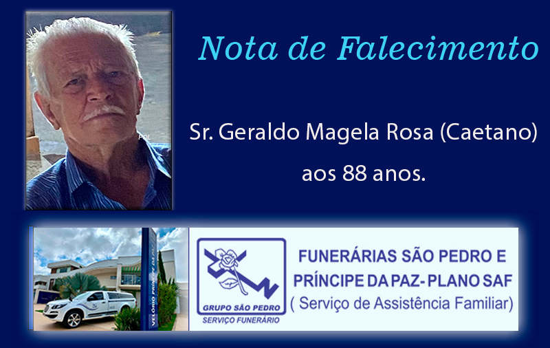 Faleceu nesta terça-feira, 28/04, em Patrocínio/MG, Sr. Geraldo Magela Rosa (Caetano) aos 88 anos.