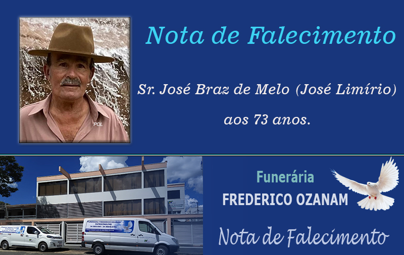 Faleceu nesta segunda-feira, 02/6, em Patrocínio/MG, Sr. José Braz de Melo (José Limírio) aos 73 anos.