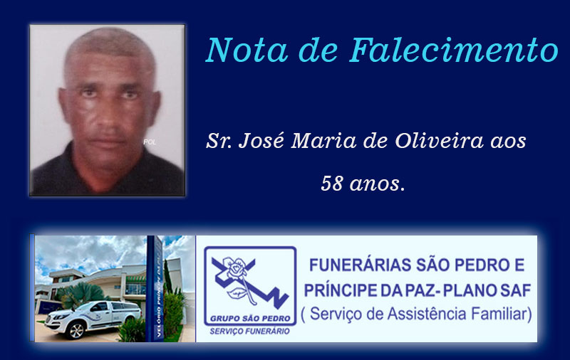 Faleceu nesta quinta-feira, dia 19/02/2026, em Patos de Minas/MG, Sr. José Maria de Oliveira aos 58 anos.