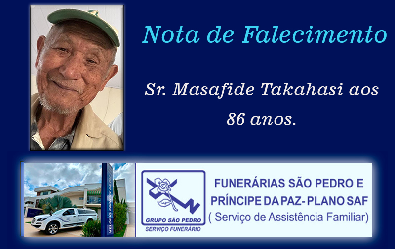 Faleceu nesta quarta-feira, 11/02/2026, em Patrocínio/MG, Sr. Masafide Takahasi aos 86 anos.