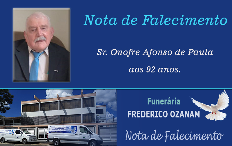 Faleceu nesta quinta-feira, 22 de janeiro de 2026, em Patrocínio/MG, o Sr. Onofre Afonso de Paula aos 92 anos.
