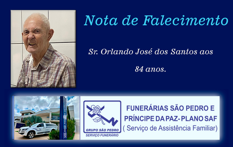 Faleceu neste sábado, 21 de março de 2026, em Patrocínio/MG, Sr. Orlando José dos Santos aos 84 anos.