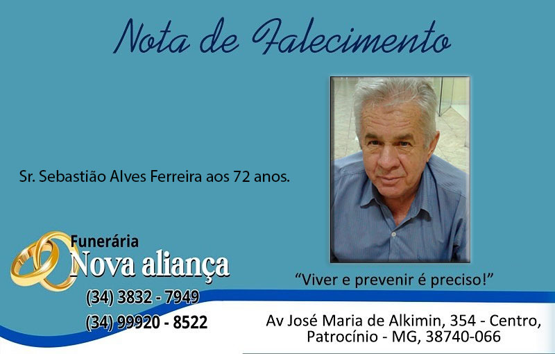 Faleceu nesta sexta-feira, 03 de abril de 2026, em Patrocínio/MG, Sr. Sebastião Alves Ferreira aos 72 anos.