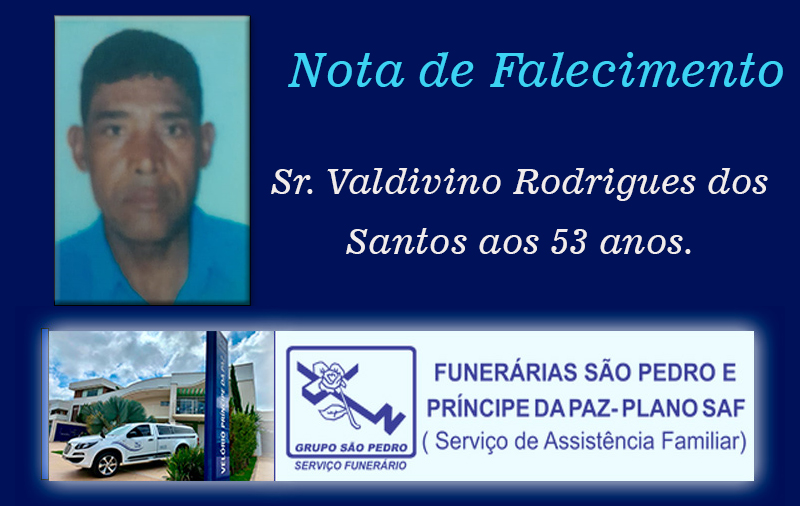 Faleceu nesta terça-feira, dia 07 de outubro de 2025, no município de Patrocínio (MG) – Sr. Valdivino Rodrigues dos Santos aos 53 anos.