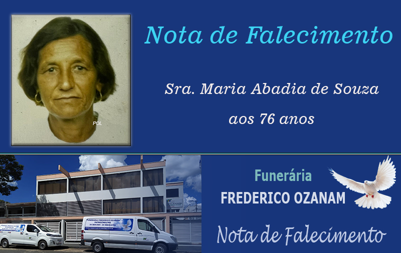 Faleceu nesta terça-feira, 04 de novembro de 2025, em Patrocínio/MG, Sra. Maria Abadia De Souza aos 76 anos.