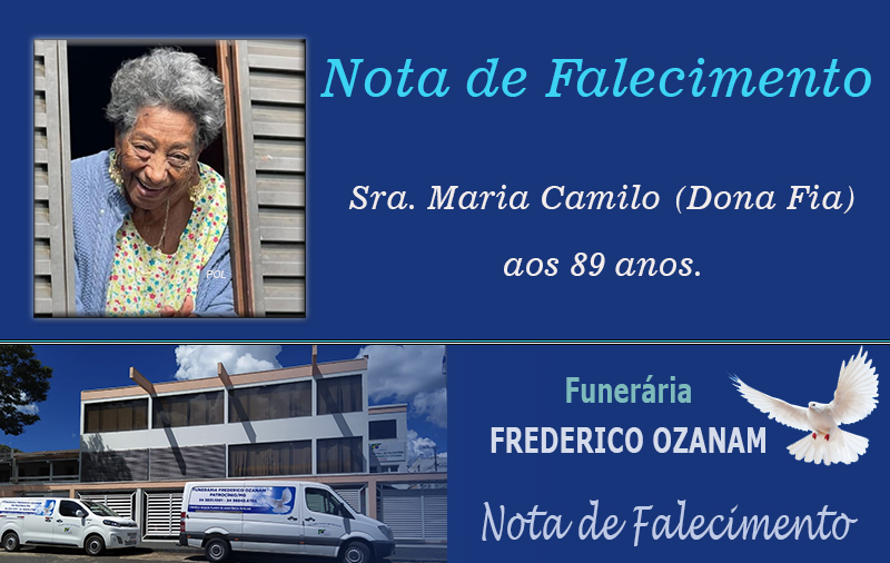 Faleceu nesta quinta-feira, 15 de janeiro de 2026, em Patrocínio/MG, a Sra. Maria Camilo (Dona Fia) aos 89 anos.