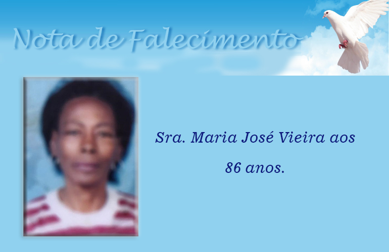 Faleceu nesta sexta-feira, 13/2, em Patrocínio/MG, Sra. Maria José Vieira aos 86 anos.